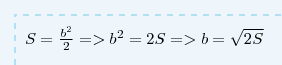 Площадь квадрата,диагональ равна b, можно вычислить по формуле S= b²/2. Выразите из этой формулы диагональ квадрата b.