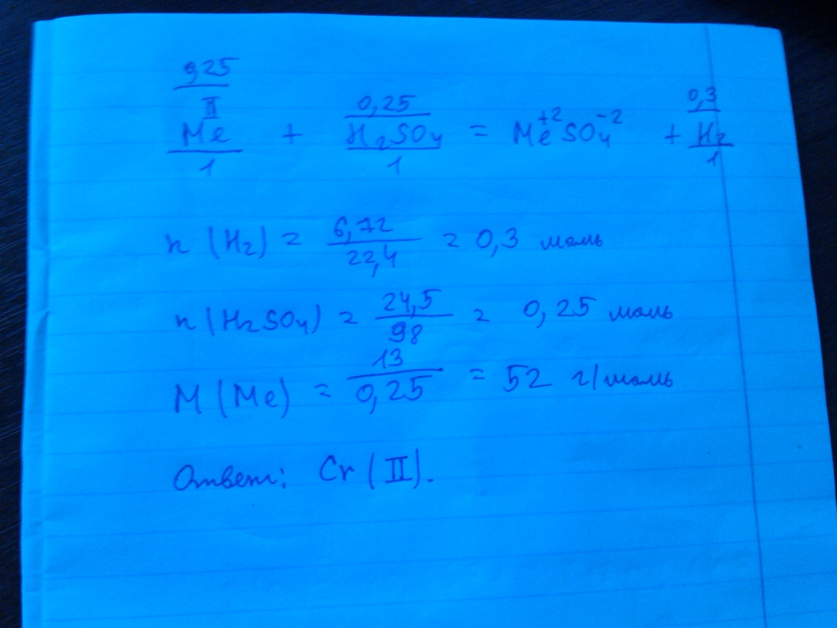 двухвалентный металл массой 13 г взаимодействует с 24,5г серной кислоты при этом объем выделившегося водорода составил 6,72 л какой металл был взят
