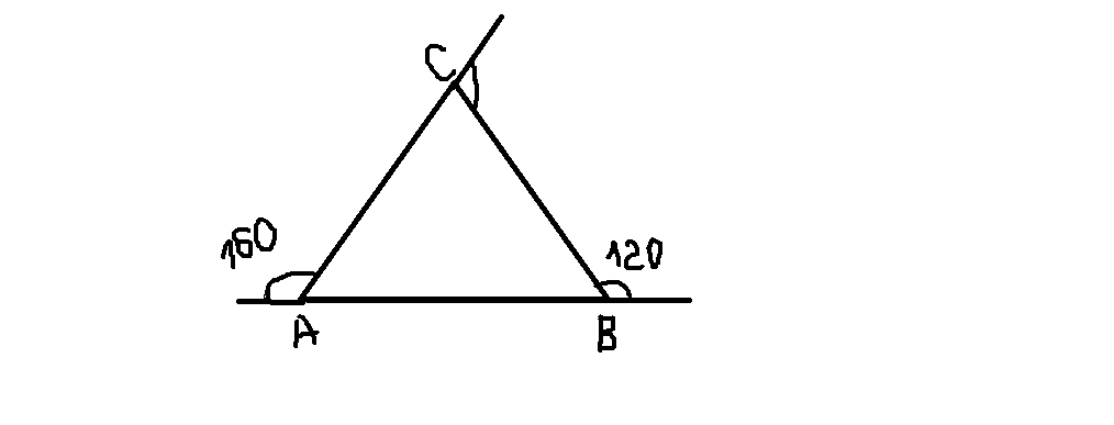 2 внешних угла треугольника 120 и 160 градусов.Найдите его третий внешний угол.Сделайте вывод о сумме внешних углов треугольника