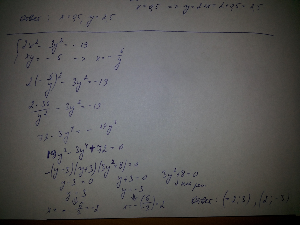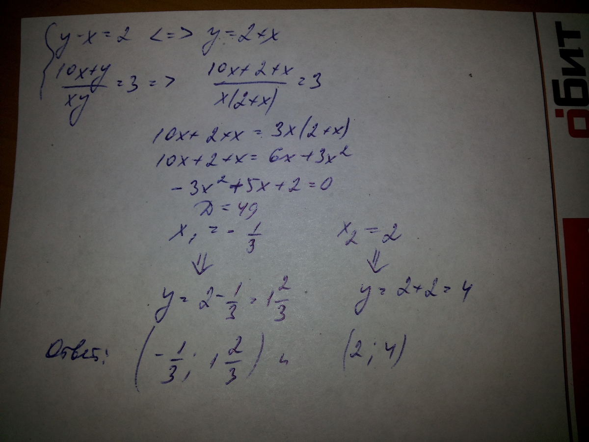 если x=2 то y=4. и x=-1/3 то y=1 1/3