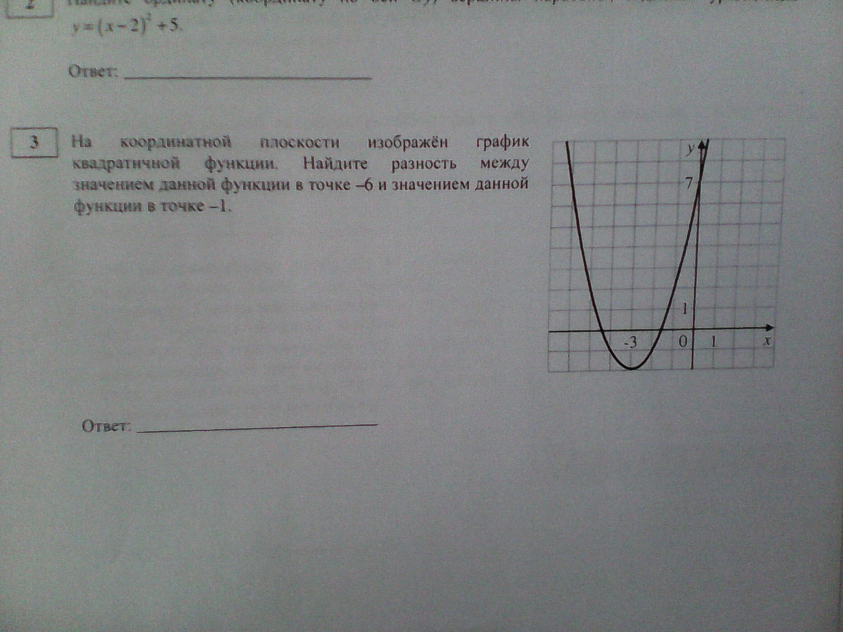 на координатной плоскости изображен график квадратичной функции .найдите разность между значением данной функции в точке -6 и значением данной функции в точке -1.