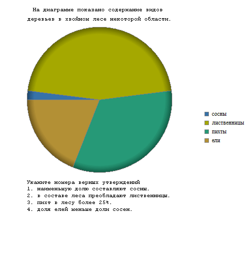 На диаграмме показано содержание видов деревьев в хвойном лесе некоторой области.