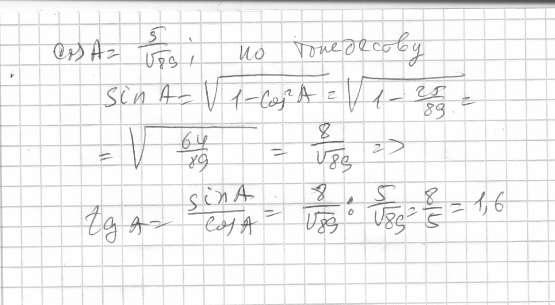 В треугольнике ABC угол C равен 90 градусов,cosA=5/корень 89. Найдите tgA.