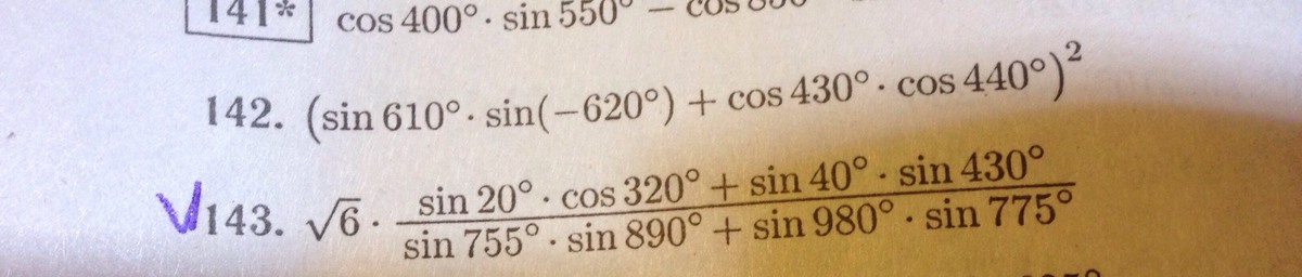 √6(sin20cos(360-40)+sin40sin(360+70))/(sin(720+35)sin(720+170)+sin(720+260)sin(720+55)=√6(sin20cos40+sin40sin70)/(sin35sin170+sin260sin55)= √6(sin20cos40+sin40cos20)/(sin35sin10-cos10cos35)=√6sin(20+40)/cos(10+35)= √6sin60/cos45=√6*√3/2/(√2/2)=3