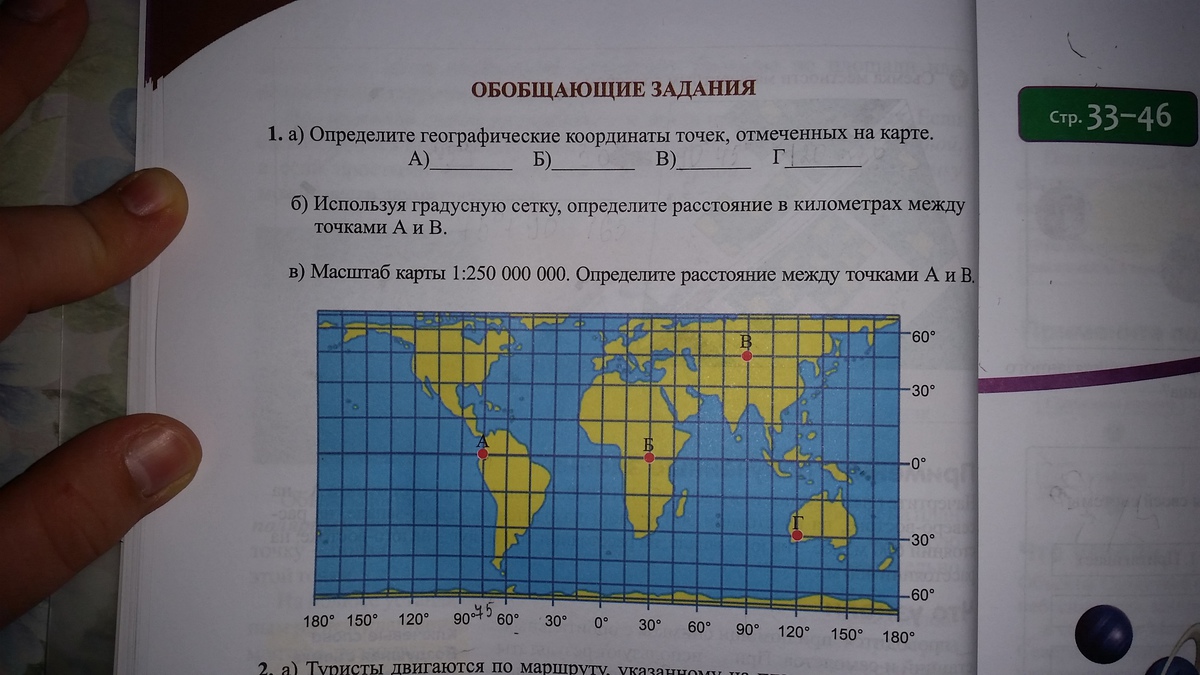 Расстояние между точками А и В = 45°х111 км. (один°) = 4995 км.