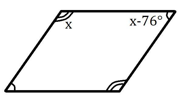 Пусть больший угол равен x, тогда смежный с ним угол равен x-76°.