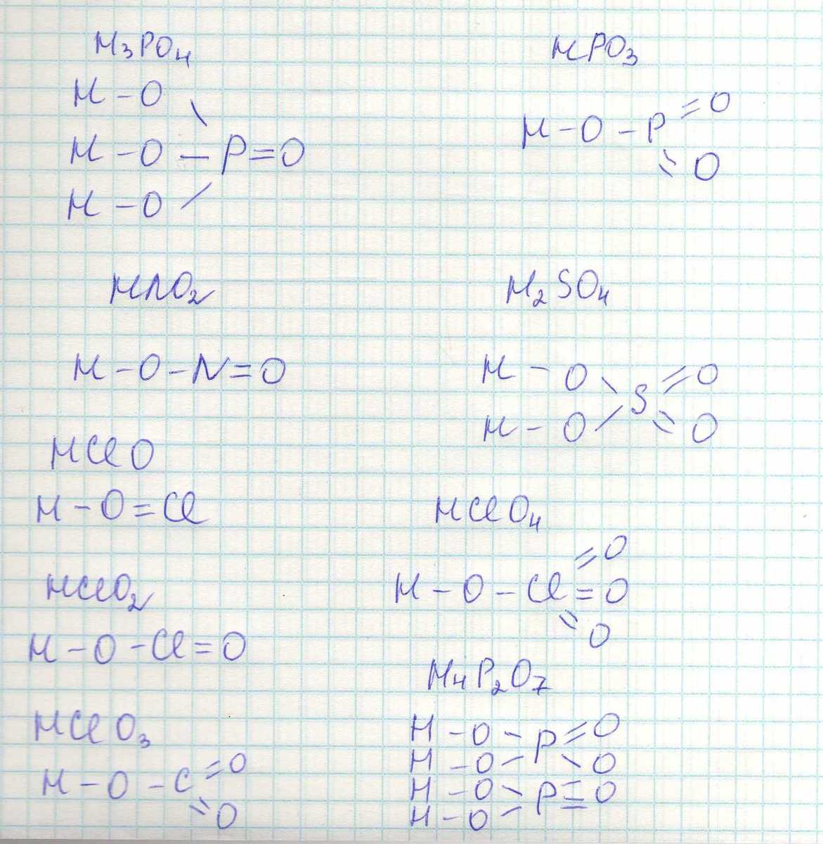 напишите графические формулы следующих соединений:H3PO4, HPO3, HNO2, H2SO4,HClO, HClO2, HClO3, HClO4,H4P2O7