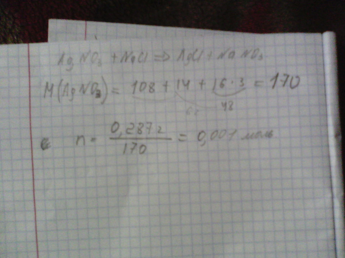 AgNO₃+NaCl=AgCl+NaNO₃, если масса AgNO₃ составила 0,287г.