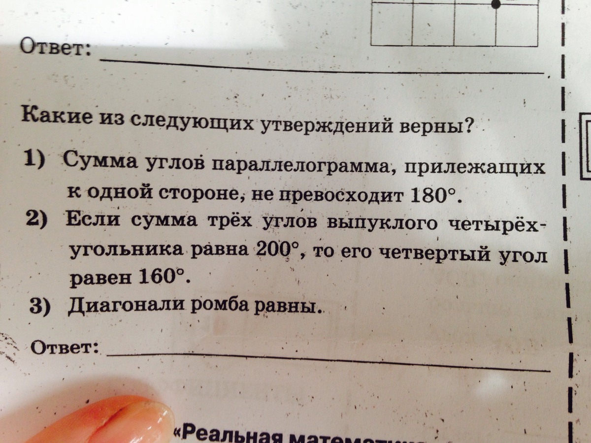 1) Не верное утверждение! Сумма углов параллелограмма, прилежащих к одной стороне равна 180 градусов
