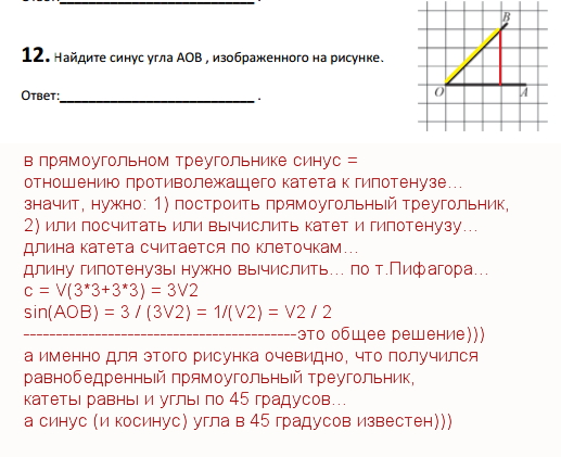 А что извесно... можно через теорему синусов косинусов.ну по клеточкам видно что там 45* а значить корень из 2 деленное на 2
