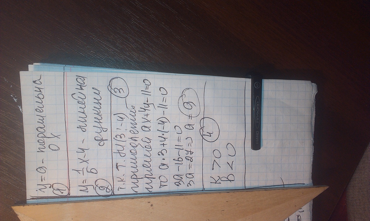 в первом задании нужно было указать какая прямая параллельна Ох, я указала, в четвертом указать коэффициенты в и к, в меньше нуля К - больше нуля