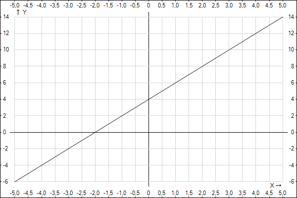 а) пересечение оси Х в точке (-4; 0), пересечение оси У в точке (0; 2)