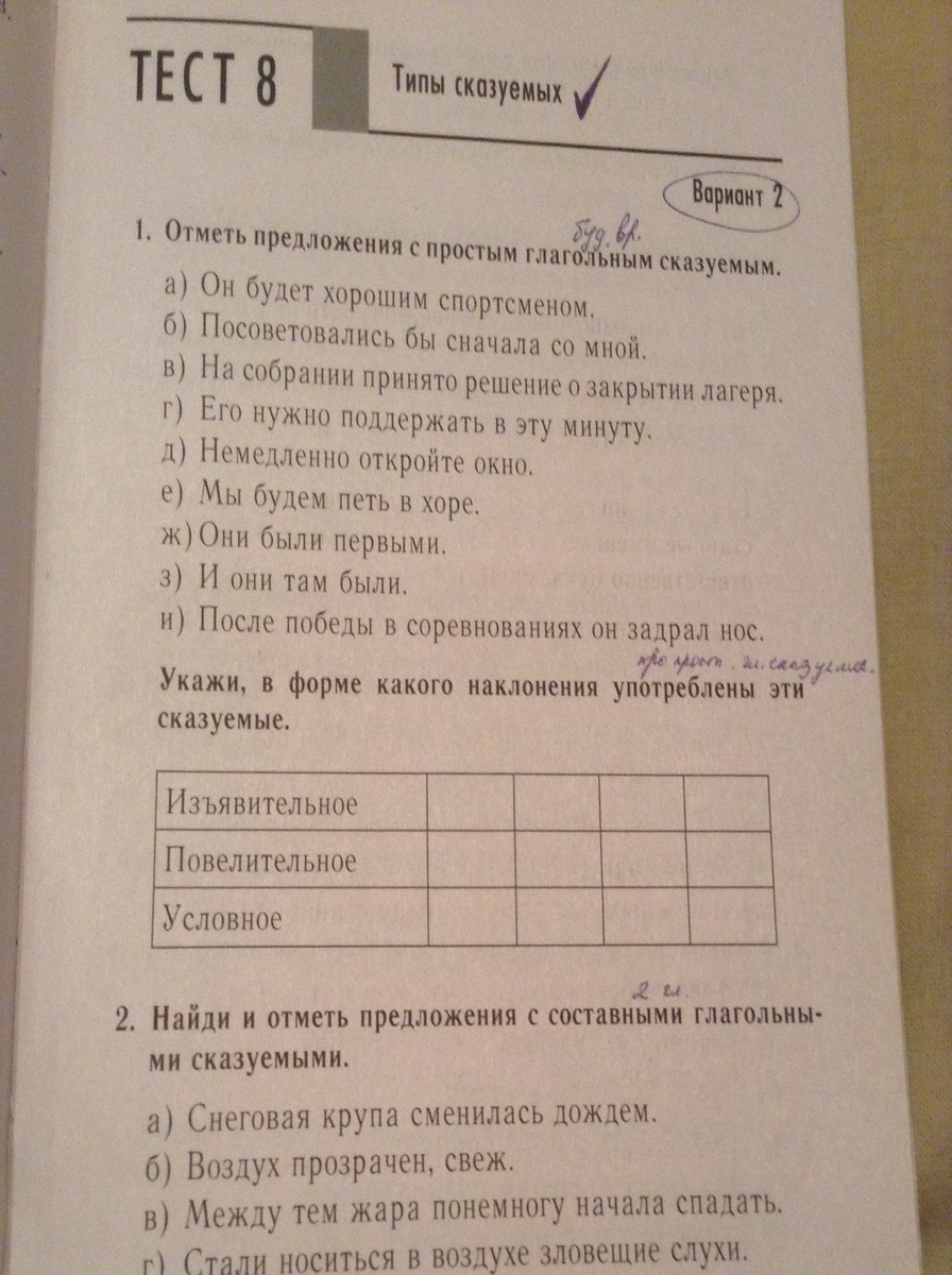В первом задании отметить простые глагольные сказуемые буд. время и указать в форме какого наклонения они употреблены