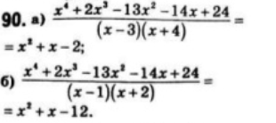 (x^4+2x³-13x²-14x+24 )/(х-3)(х+4)=(х-1)(х+2)(х-3)(х+4)/(х-1)(х+2)=(х-3)(х+4)=х²+х-12