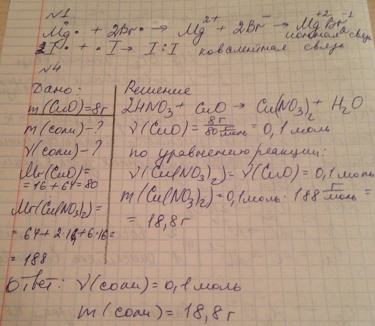 4. При взаимодействии азотной кислоты с 8г оксида меди(II) получили