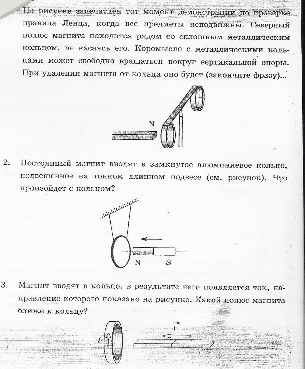 2) Во втором случае все наоборот. Поле магнита нарастает. Поле индукционного тока мешает нарастанию. Кольцо будет отталкиваться.