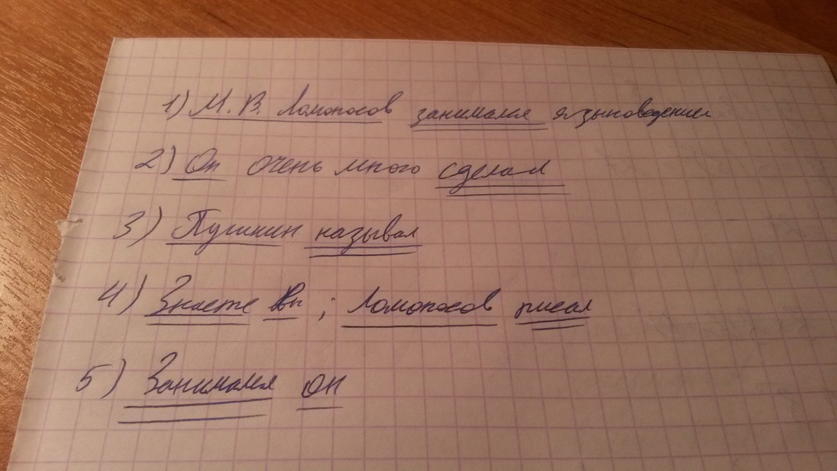 1.М.В. Ломоносов(одна черта) занимался языкознанием(две черты)