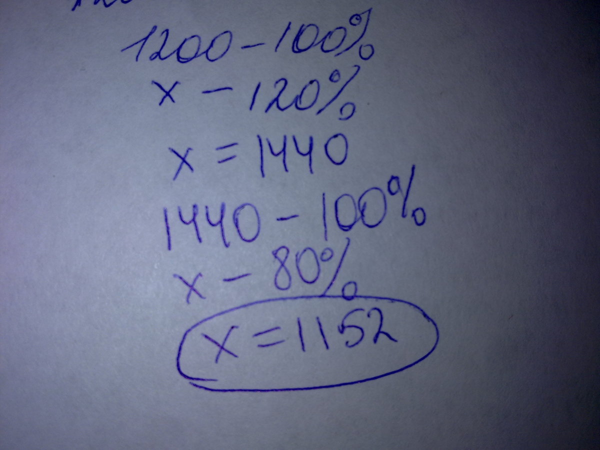 Телевизор стоит 1200 рублей. Его цену сначала повысили на 20 процентов, а затем снизили на 20 процентов. Какая цена телевизора после 2х переоценок?