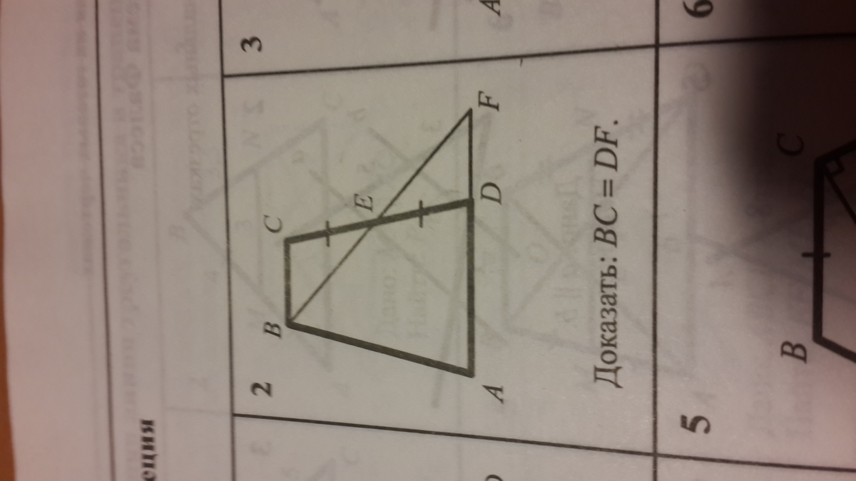 угол ВСЕ= ЕДФ как накрестлежащие при параллельных ВС и Аф и сеекщей СД. Углы Е в треугольниках ВСЕ и ЕДФ равны как вертикальные, получается ...треугольники ВСЕ и ЕДФ равны по стороне и прилегающей к ней углам, значит и искомые стороны тоже равны