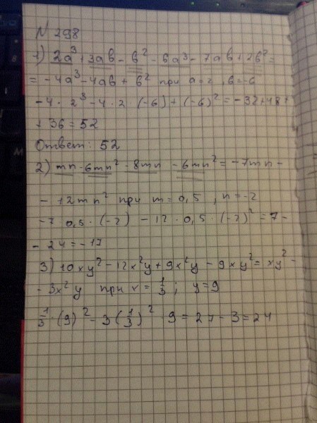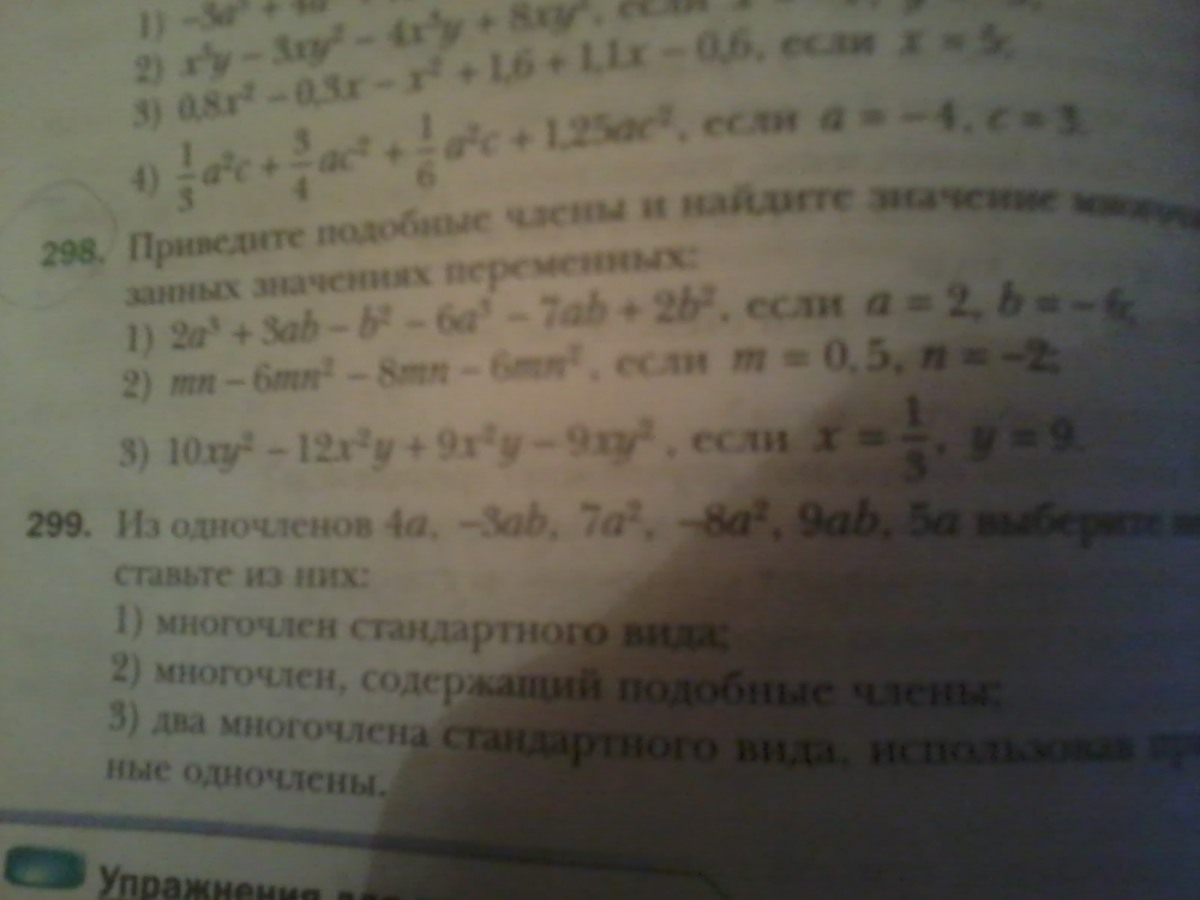 Приведите подобные члены и найдите значение многочлена при указанных значениях переменнных: Номер 298