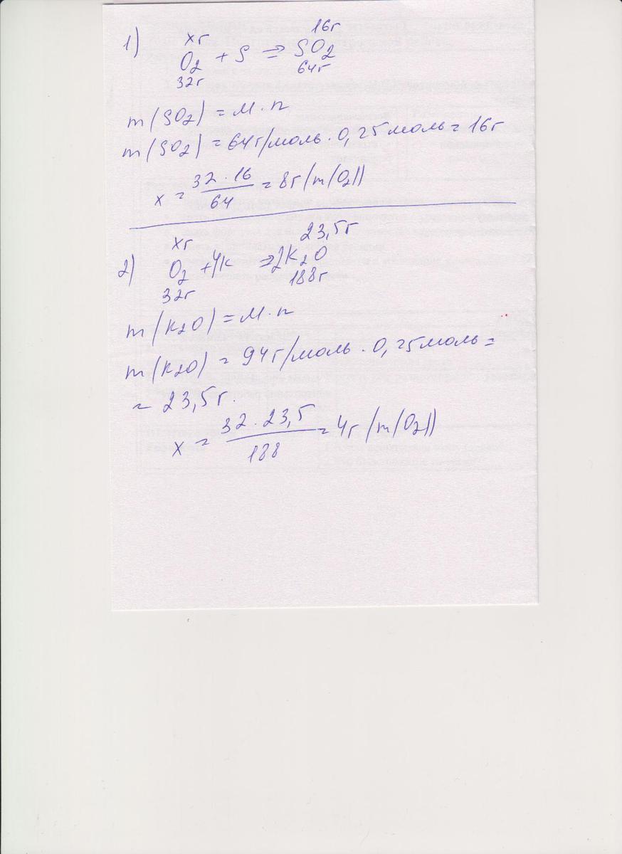Рассчитайте массу кислорода, которая потребуется для взаимодействия с калием, если в ходе реакции образуется 0,25 моль оксида.