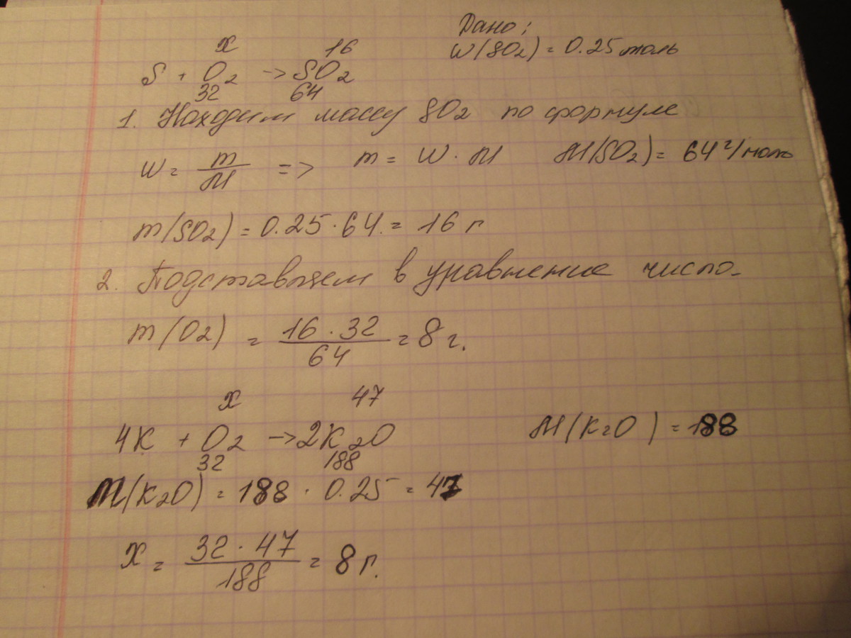 Рассчитайте массу кислорода, которая потребуется для взаимодействия с серой, если в ходе реакции образуется 0,25 моль оксида.