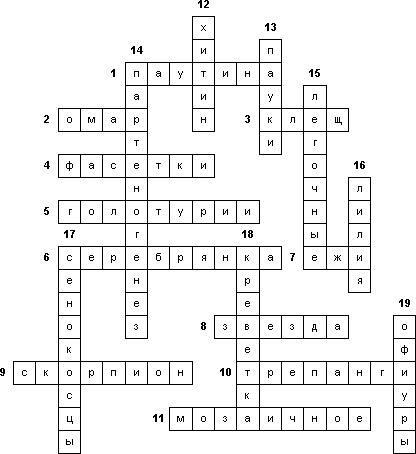 16. Морское животное класса иглокожих с пятью щупальцами.