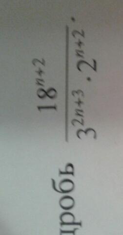 frac{18^{n+2}}{3^{2n+3}*2^{n+2}}= frac{18^n*18^2}{3^2*3^n*2^n*2^2}= frac{2^n*3^{2n}*2^2*3^4}{3^{2n}*3^3*2^n*2^2} =3^{4-3}=3^1=3