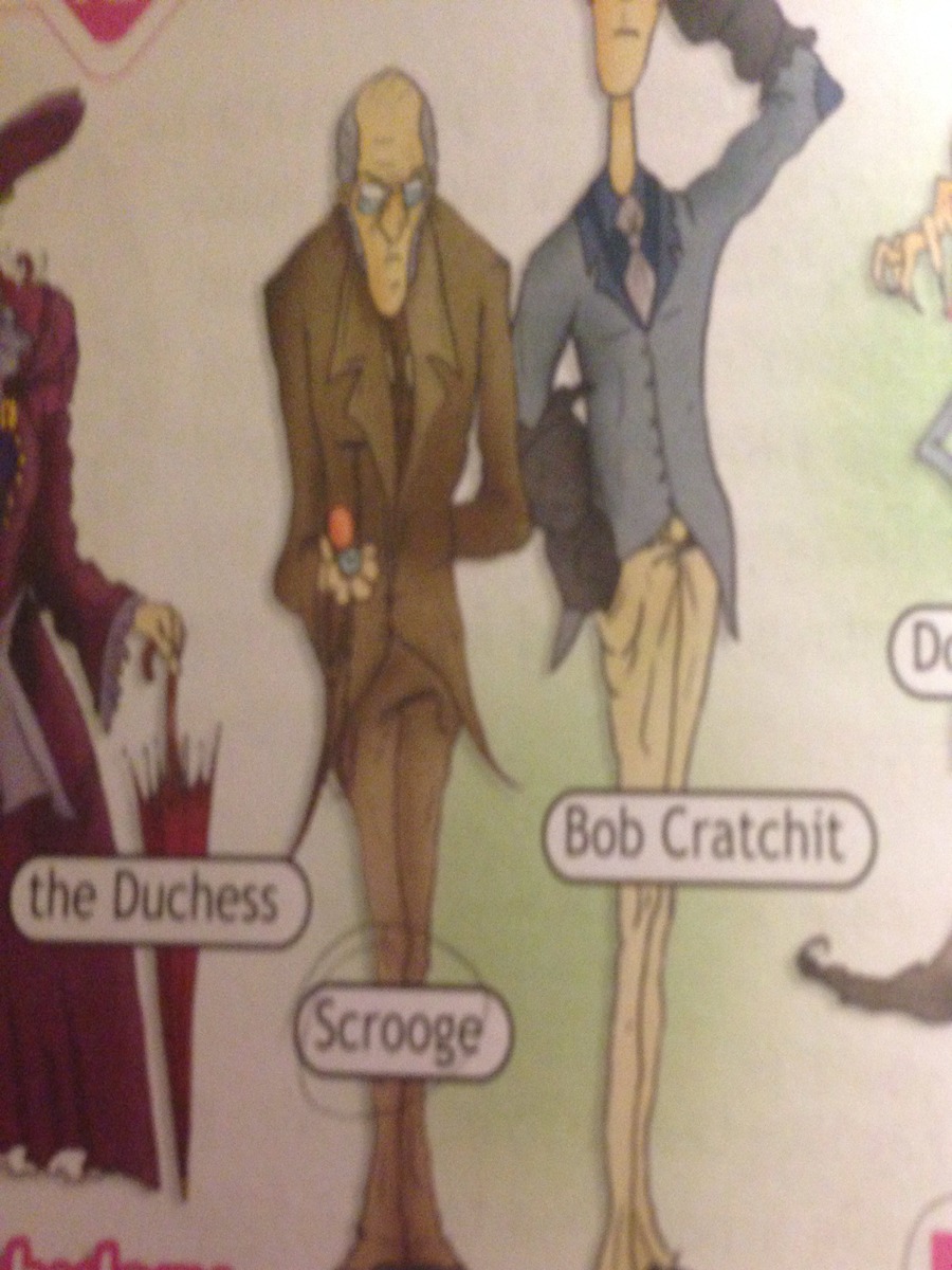 Опишите пожалуйста героя Scrooge, с помощь слов из рамок.