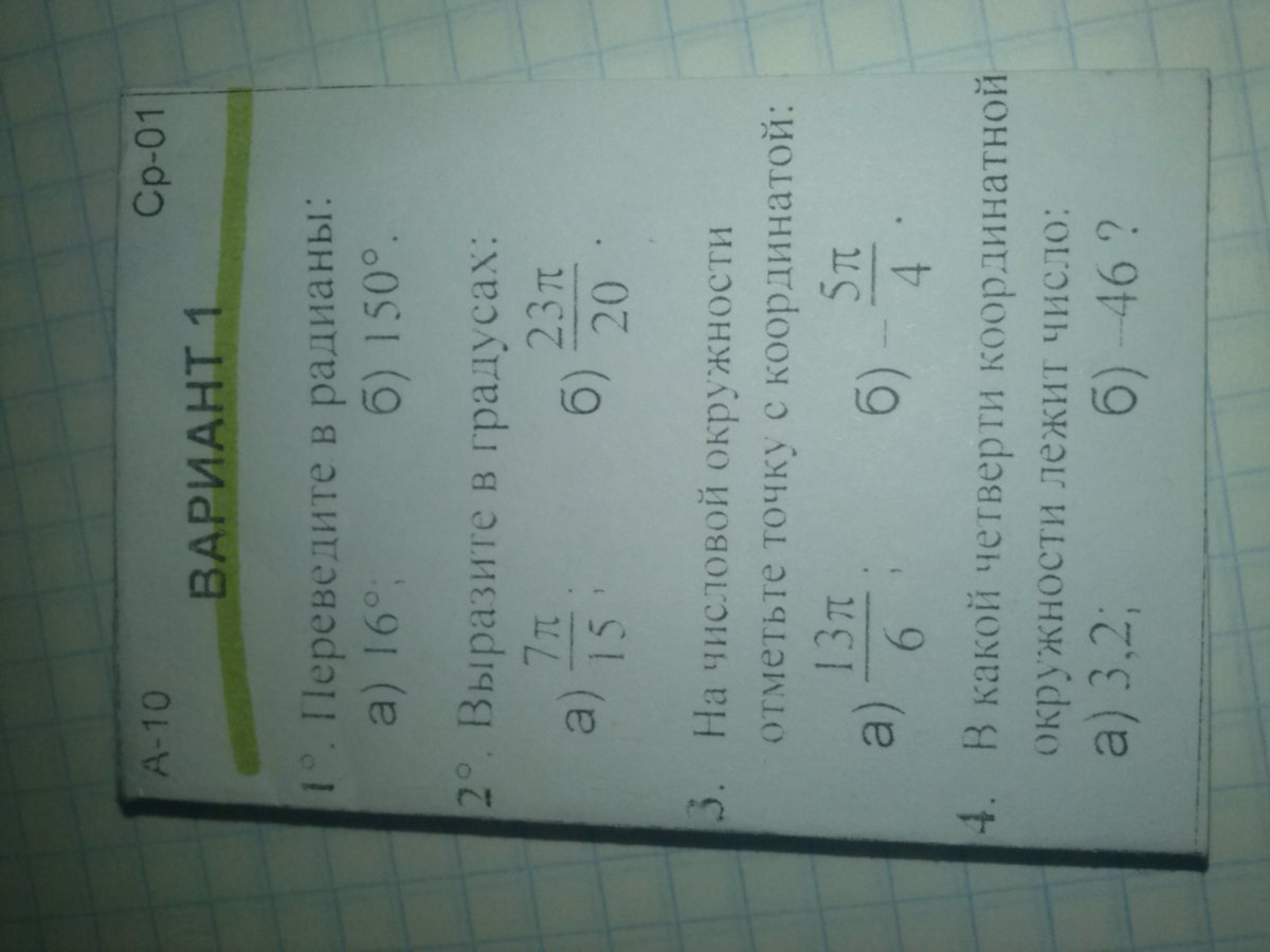1а) 16⁰⇒ 180⁰=π 16⁰=16⁰·π/180⁰=2π/45;