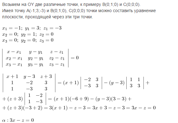 Имея точку А(-1;3;-3) и В(0;1;0), С(0;0;0) точки можно составить уравнение плоскости, проходящей через эти три точки.