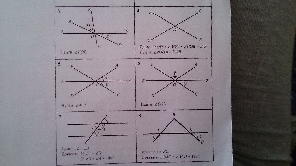 №3 Угол FOE=BOC (как вертикальные). Значит, FOE=180-(55+25)=100