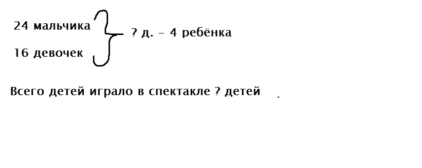 В школьном театральном кружке 24 мальчика и 16 девочек. Четверо детей не принимали участие в спектакле. Сколько детей играло в спектакле?