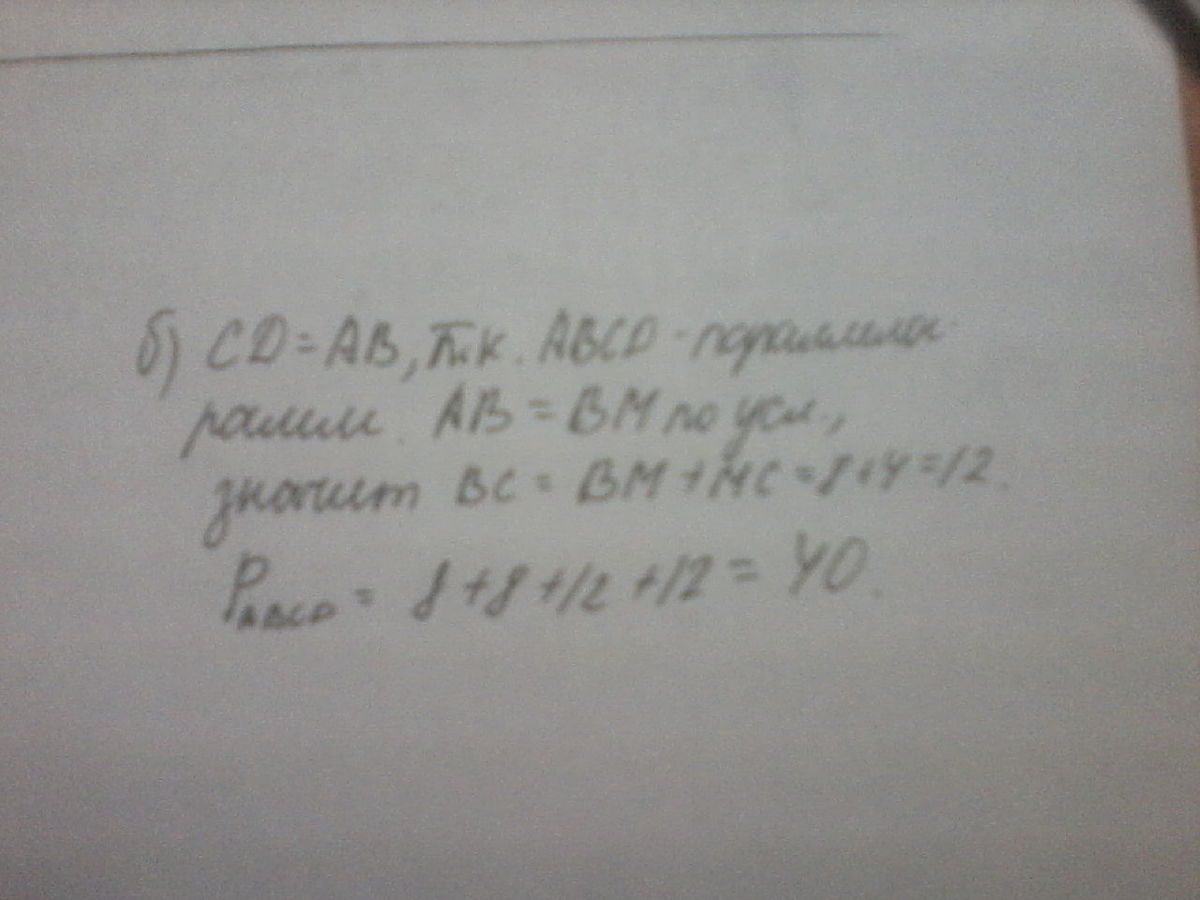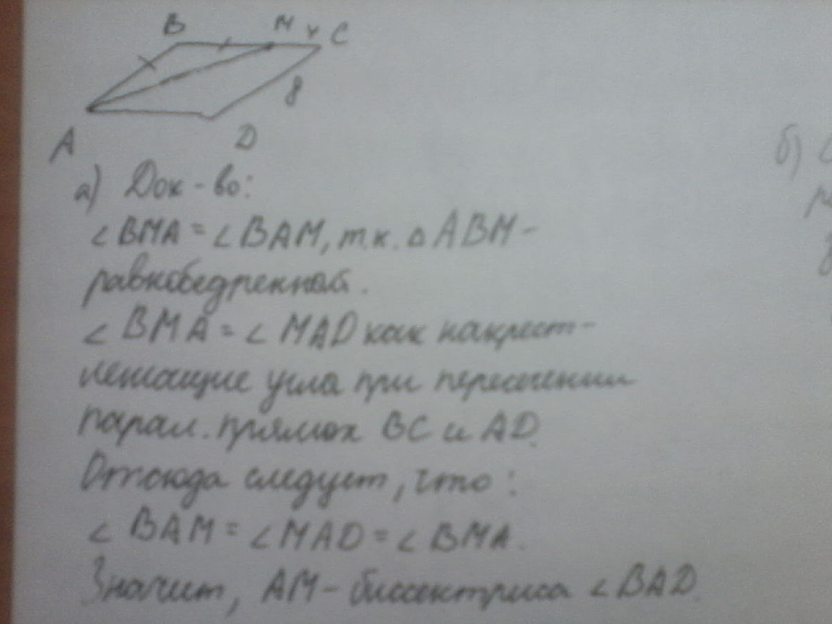 так, что AB=BM. а) Докажите, что AM - биссектриса угла BAD. б) Найдите