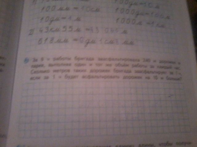 ответ: за 7 часов, если за 1 час заосфальтированые дорожки будут увеличиваться на 10м., то заосфальтируют 350 м.