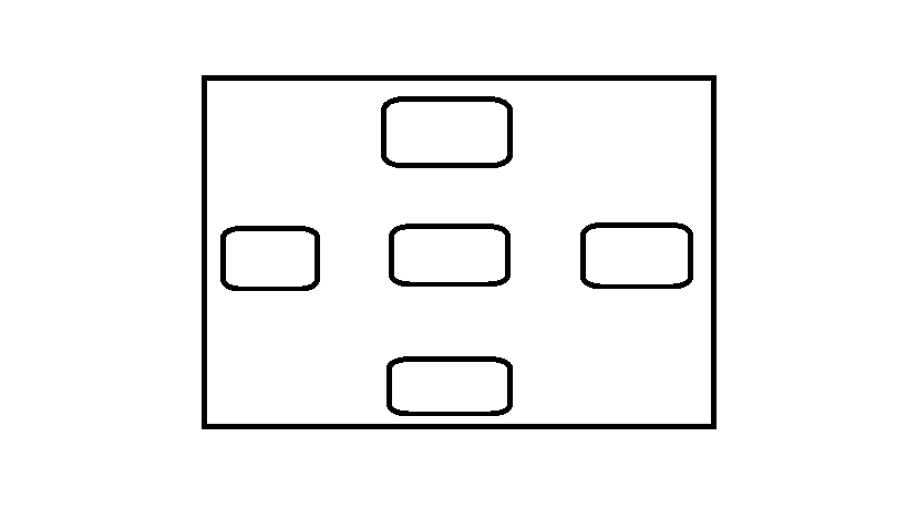 Так как в комнате четыре стенки,а стульев пять,то просто ставим пятый посредине и он будет считатся вторым каждому стулу,которые стоят возле стенки.