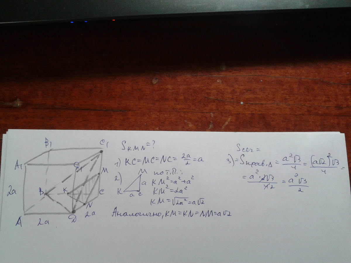 в кубе abcda1b1c1d1 ребро равно 2а .через середину ребра CD проведена плоскость параллельная плосткости BC1D . Найдите площадь сечения
