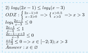 2) log4(2x-1)<= log4(x-3)