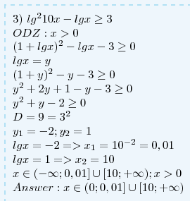 3) lg^2(10x)-lgx >=3