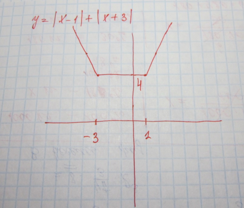 в точках, где значение икса образовывает каждый модуль в ноль, происходит преломление ломаной графика: х=-3 и х=1