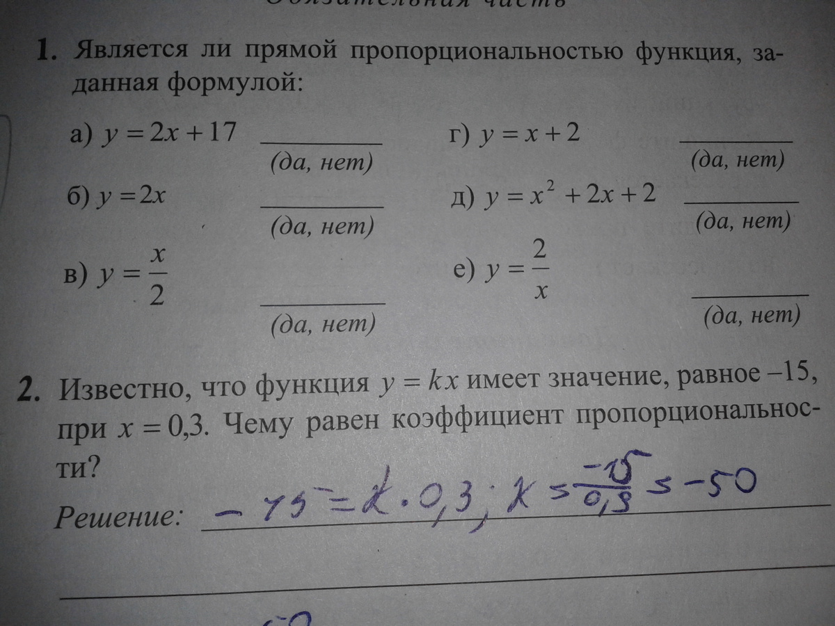 2)Прямая пропорциональность-это функция вида y=kx