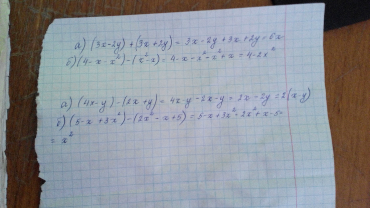 а)(3х-2у)+(3х+2у)