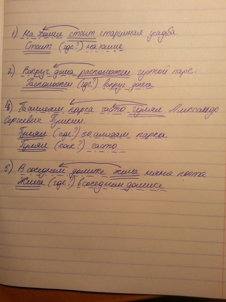 Прочитай.Выпиши из предложений сочетания сказуемых с обстоятельствами. Письменно задай вопросы 1).На холме стоит старинная усадьба. 2)Вокруг домарасположен густой парк. 3)Это Михайловское.4)По аллеям папка часто гулял Александр Сергеевич Пушкин.5)В соседнем домике жила няня поэта.
