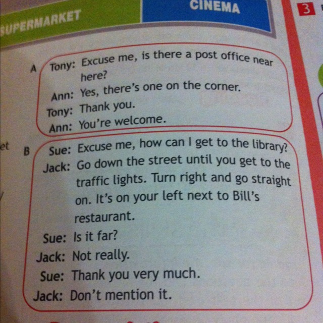J:Идите вниз по улице,пока не доберетесь до светофора.Поверните вправо и идите прямо.Библиотека будет слева от вас,рядом с ресторанам Билли.