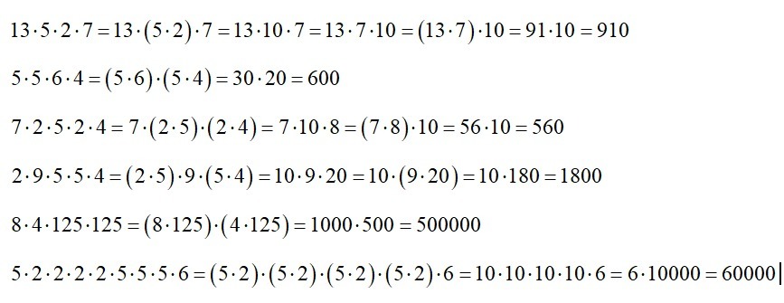 Вычислите устно произведения и запишите так, как вы рассуждали.13*5*2*7