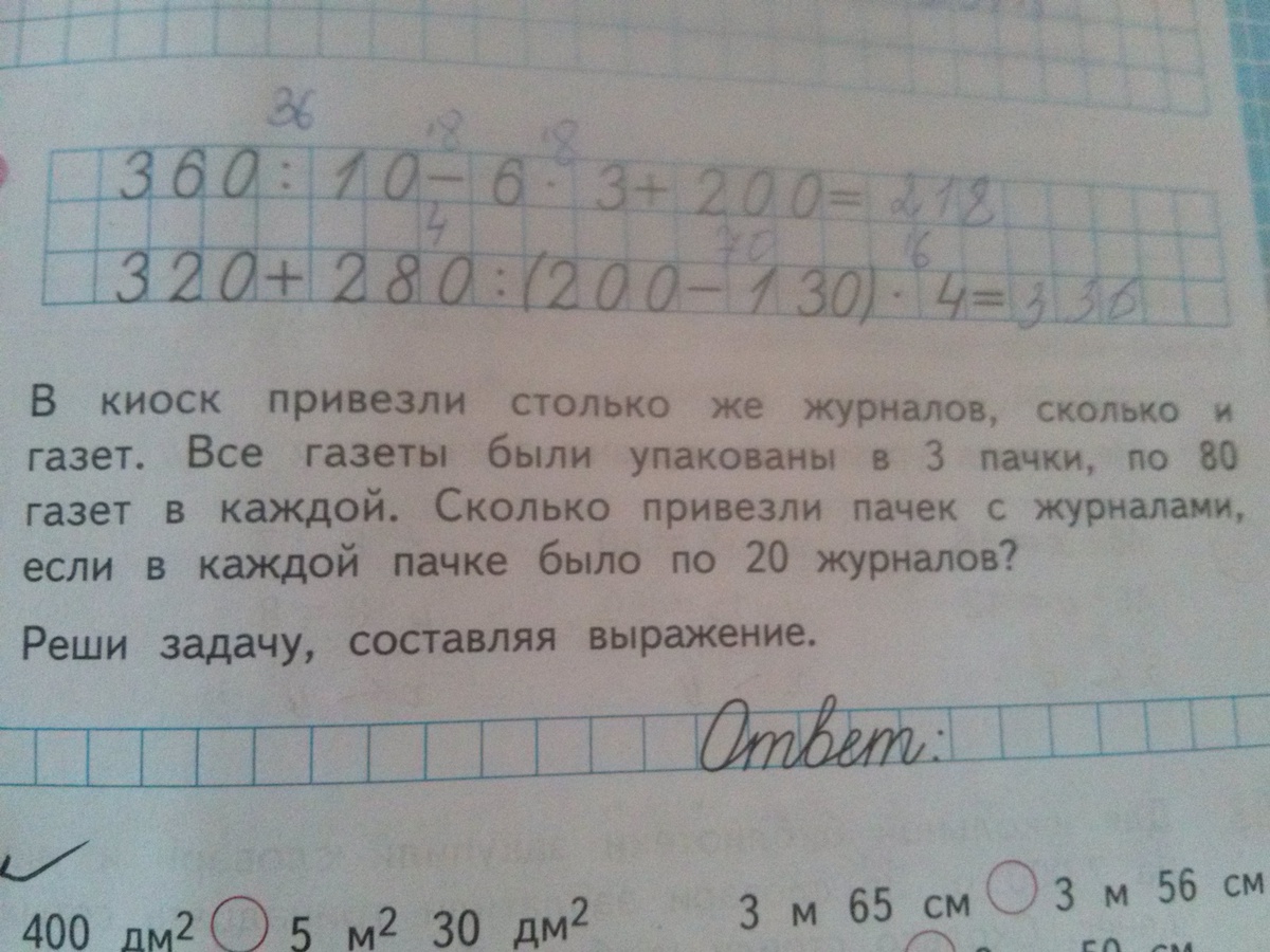 В киоск привезли столько же журналов сколько и газет.Все газеты были упакованы в 3 пачки по 80 газет в каждой.Сколько привезли пачек с журналами, если в каждой пачке было по 20 жулналов?