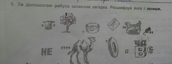 2 рядок: не верблюд-перші 4 букви (залишається люд) шина-перша буква (залишається ина), а на букві В склад ЧА та ще є (вийде навчає). Отже, НЕ ЛЮДИНА, А НАВЧАЄ