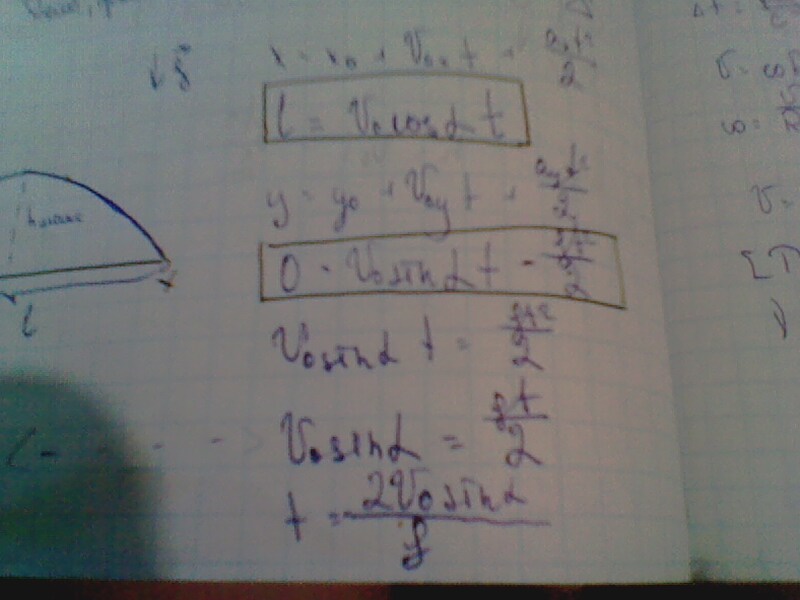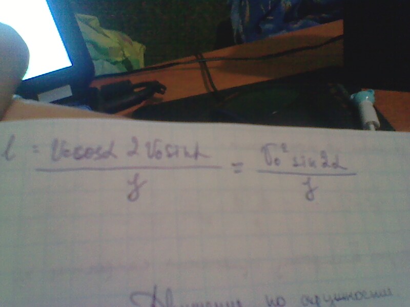 На втором рисунке видно готову формулу v0^2sin2A/g. Просто подставь свои величины. Но если нужно полное решение то спиши перед этим уравнения на оси с первой страницы.