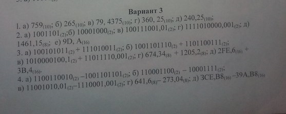 В заданиях 3-5 проверять правильность вычислений переводом исходных данных и результатов в десятичную систему счисления. В задании 1д получить пять 5 знаков после запятой в двоичном представлении.
