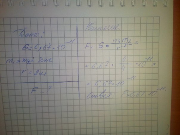 Какова сила притяжения двух шариков массой по 2 кг каждый, если они находятся на расстоянии 2 м друг от друга?